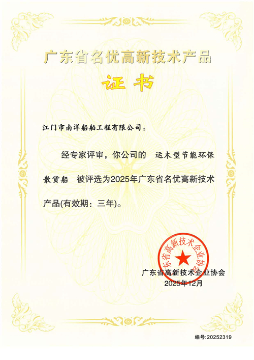 資質(zhì)榮譽您當(dāng)前位置: 首頁 > 關(guān)于JNS > 資質(zhì)榮譽 > 《運木型節(jié)能環(huán)保散貨船》 被認(rèn)定為廣東省高新技術(shù)產(chǎn)品