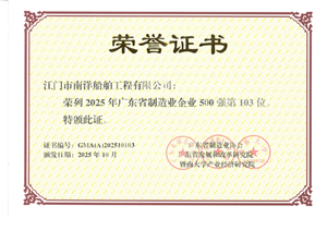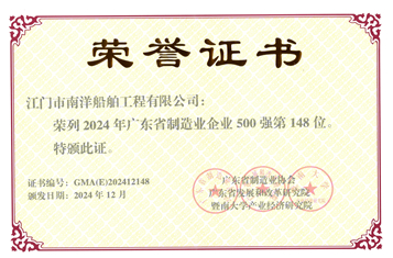 2021年5月25日 JNS第80艘小靈便型散貨船JNS179船順利交付。 ![]() 2021年12月 榮獲“廣東省制造業(yè)企業(yè)500強(qiáng)” 。