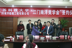The afternoon of March 20, 2014, Mr. Zhu Jilei, chief financial officer of JNS, attended the signing ceremony of student scholarship in Jiangsu University of Science and Technology(JUST) which was held at JUST’s meeting-room. Mr. Zhu said, JNS hopes to take the opportunity of the founding of scholarship to further cooperate with JUST to obtain win-win. Ms. Huang Jin, a representative for school, vice principal of JUST, thanks for giving the educational support from JNS and highly praise for the HR design of JNS.