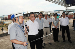 In the afternoon of May 28, Hu Chunhua, a member of the Political Bureau of the Communist Party of China (CPC) Central Committee, Secretary of the Guangdong Provincial CPC Committee, visited Jiangmen Nanyang Ship Engineering Co.,Ltd. Chief leaders of governments accompanied Hu Chunhua in the visit. Mr. Liao Zhaomin, Director of JNS and Mr. David Huang, President & Executive Director of JNS gave a warm reception and presented a report on the business circumstance.