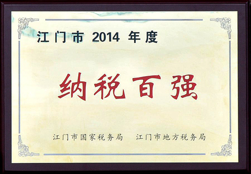 JNS on Top100 Tax Enterprise of Jiangmen City’s list