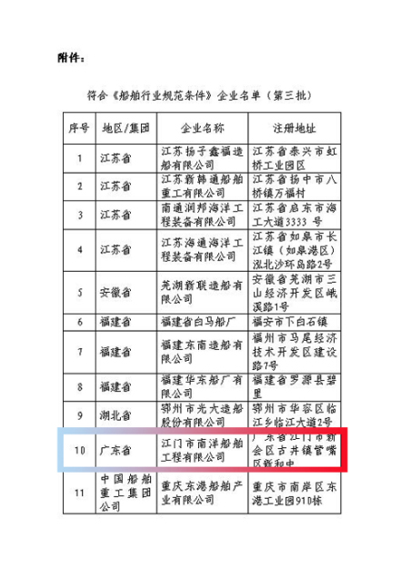 As of this year, Jiangmen Nanyang Ship Engineering Co., Ltd.(JNS) has become the single in Guangdong province of the third white list.