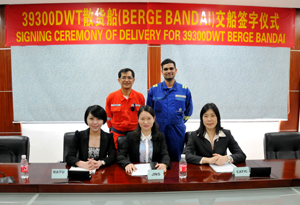 The Nisshin Shipping Co.,Ltd(NISSHIN), which is Japan shipowner, recently on March 31 took delivery, in Gujing, of a new 39300DWT bulk carrier Berge Bandai from JNS.