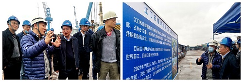 Lin Xibo,Party Chief of Xinhui District, arrived at JNS quayside for visit on February 17,2022. The Director Liao Zhaoweng and the President & Executive Director David Huang seeved.