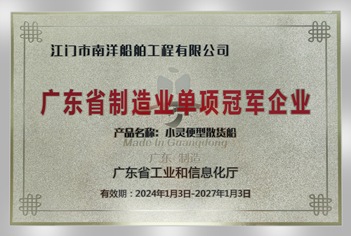 資質(zhì)榮譽(yù)您當前位置: 首頁(yè) > 關(guān)于JNS > 資質(zhì)榮譽(yù) > 廣東省制造業(yè)單項冠軍企業(yè)