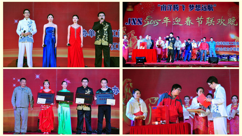 2015年1月28日晚,以“南洋騰飛 夢(mèng)想遠航”為主題的我司2015年迎春聯(lián)歡晚會(huì )在古井鎮人民會(huì )堂隆重舉行。公司全體員工、船東和船檢駐廠(chǎng)項目組成員以及勞務(wù)隊的代表們歡聚一堂,一起度過(guò)了一個(gè)難忘的夜晚。